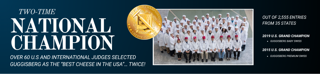 Minneapolis, MN – On Thursday, July 20, Guggisberg Cheese’s Ziller was awarded first place in the Emmental-Style category at the 2023 American Cheese Society Competition Conference. While contest winners were announced at the ACS Annual Conference in Des Moines, Iowa, the actual judging and competition took place May 18-19 at the Huntington Bank Stadium in Minneapolis, Minnesota.